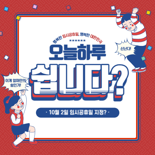 많은 사람들이 기대하고 있는 임시공휴일! 대체공휴일과는 의미가 조금 다릅니다. 대체공휴일은 빨간날의 공휴일을 대체하여 공휴일로 지정하는 것이고, 임시공휴일은 정부에서 수시로 지정하는 공휴일을 의미합니다.